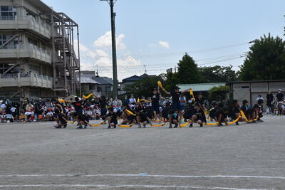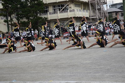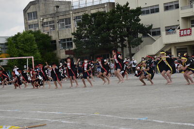 6年生は気合の入った演技で腰を落として力強いソーランを踊りました。