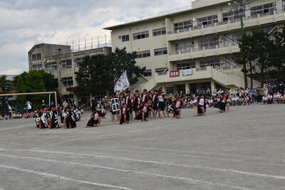 迫力があり、素晴らしい演技でした。最後に学級旗を掲げ、拍手喝采でした。