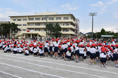 全校で閉会式を行いました。今年は赤組優勝でした。