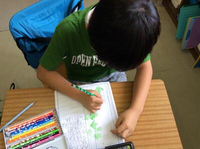 あさがお日記をかいています。花も咲き始め、楽しみです。