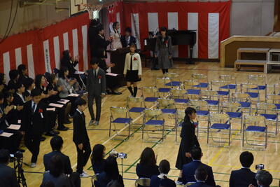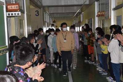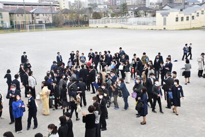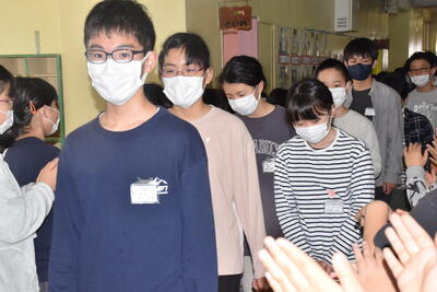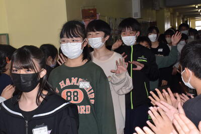 在校生みんなで卒業生を温かい拍手でお見送りしました。