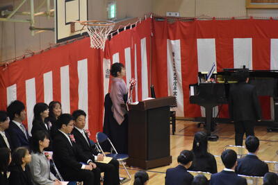 卒業式実行委員を中心に自分たちで門出の言葉を考え、一人ずつよびかけをしていきます。
