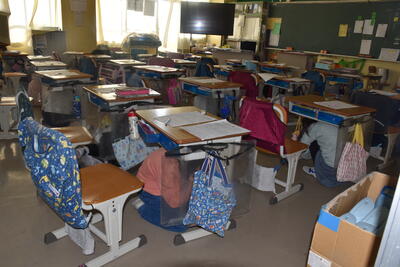 シェイクアウト訓練を行いました。放送を聞いて素早く反応することができました。