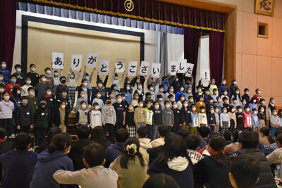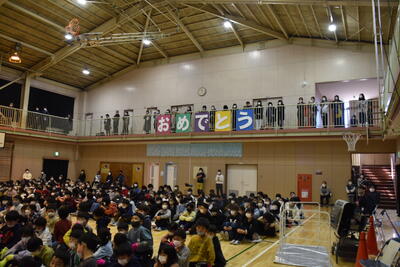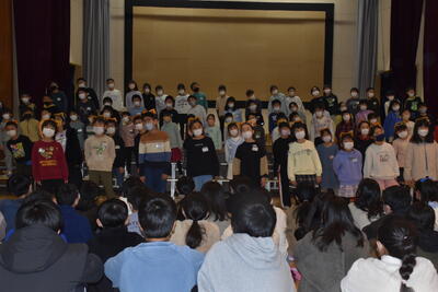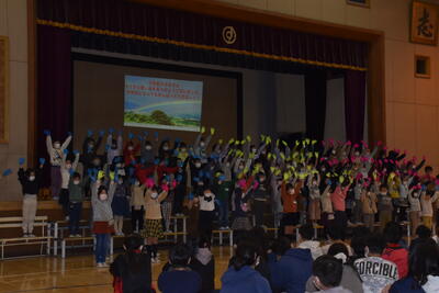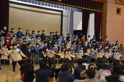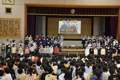 3年ぶりに全員で体育館に集まり、6年生を送る会を実施することができました。