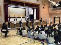 校医さんをお招きし、給食委員会・運動委員会・保健委員会の子どもたちが発表を行いました。