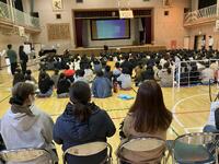 体育館で全校が集まり、いくつかの企画を用意していたのですが、残念ながらインフルエンザの広がりも懸念されるため放送での終業式に変更しました。