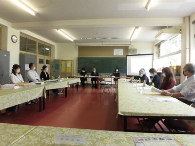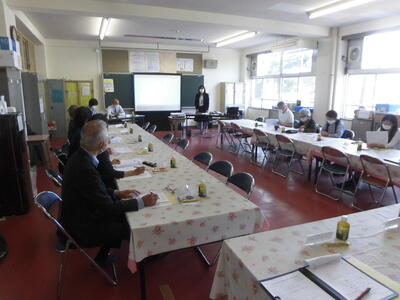 7月5日に第二回学校運営協議会が行われました。第一部は会議室にて現状報告や質疑応答の時間とし