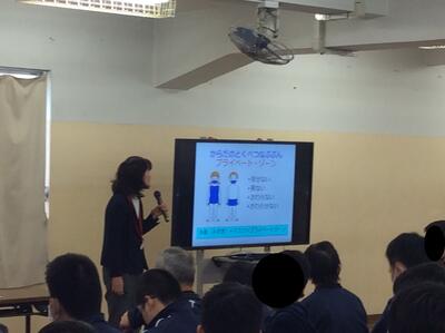 内容は「大切な体について」「人との安心な距離」「SNSの安全」「困ったときの相談」など、生徒たちが日々の生活で直面しやすい場面を含めながら、大切なポイントをわかりやすくお話しいただきました。