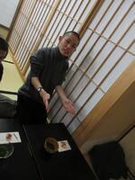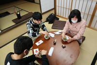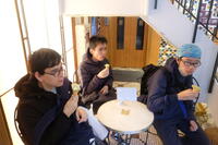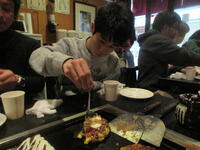 午前中は、和菓子作りとお抹茶体験を行い、昼食は自分たちでお好み焼きと焼きそばを焼いて食べました。