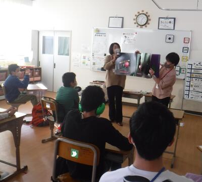 絵本や紙芝居など、いろいろな本を準備してくださったこともあり、4年生の子どもたちも興味深く聞いていました。