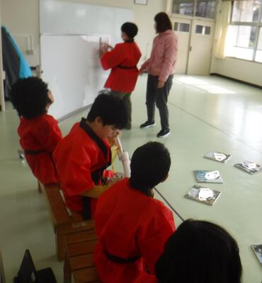 素敵なはっぴに着替え、他学年の児童を招待しました。