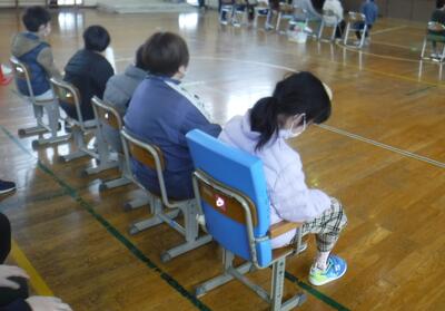 子どもたちは低、高学年ともに立派な態度でお話を聞くことができていました。