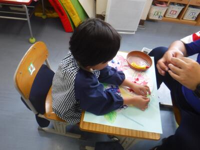 3年生は張り絵をしました。秋を感じる素敵な作品がたくさんありました。