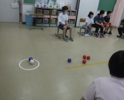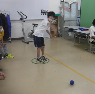 3年生が行っているボッチャに、稲越小学校の3年生も挑戦しました。よい交流の時間となりました。