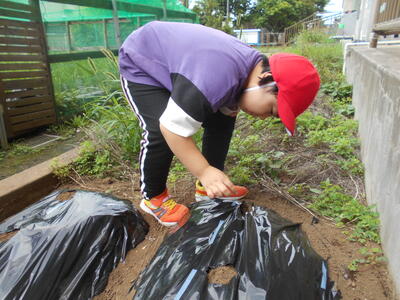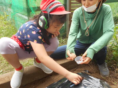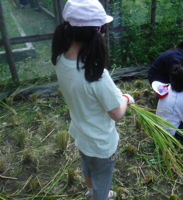 大きく実った苗をはさみで切り、ケースに入れる作業を最後まで頑張ることができました。