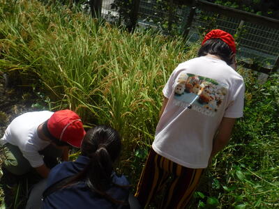 春に分けてもらった小学部の稲も実ってきています。(写真右)