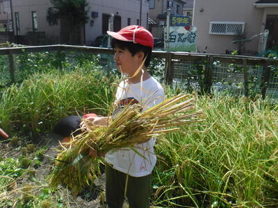 稲越小学校の5年生の稲刈りに、小学部の5年生も参加させていただきました。