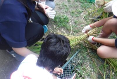 実際に稲を刈ったり、稲を紐で結んだりといろいろな体験ができました。
