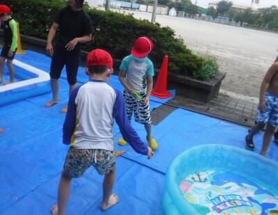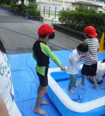 水鉄砲を使ったり、足に水をかけたりと、楽しい時間を過ごしました。