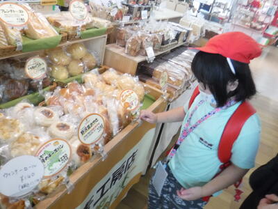 4年生が校外学習で、道の駅いちかわにパンを買いに行きました。