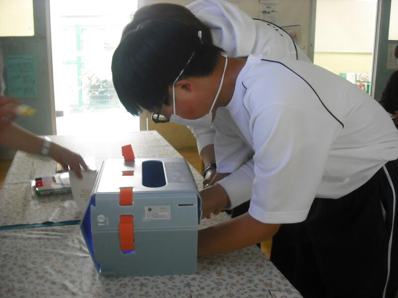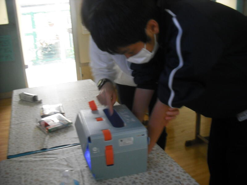 手洗いチェッカーを使い、洗えていない部分が光ることで、どこをしっかり洗えばよいのか知ることができました。