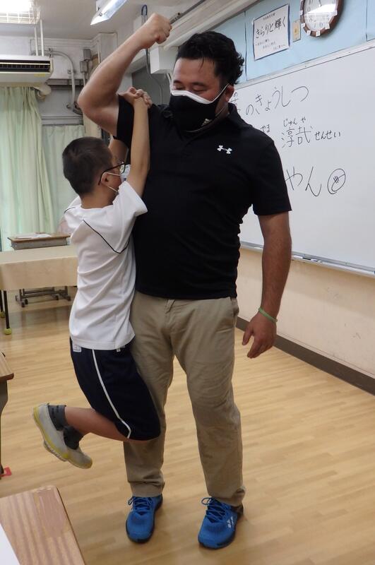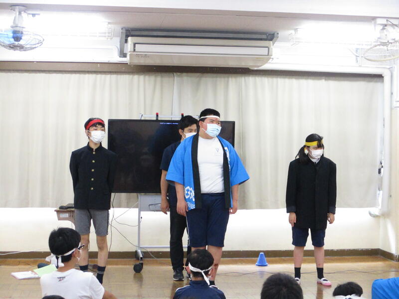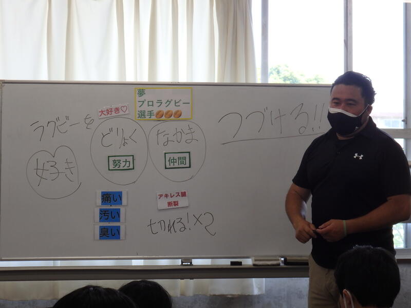 出会いの時間では、ラグビーボールを投げる実演をしてくださったり、皆でジェスチャーゲームをしたりして、楽しい雰囲気の中、夢の教室が始まりました。