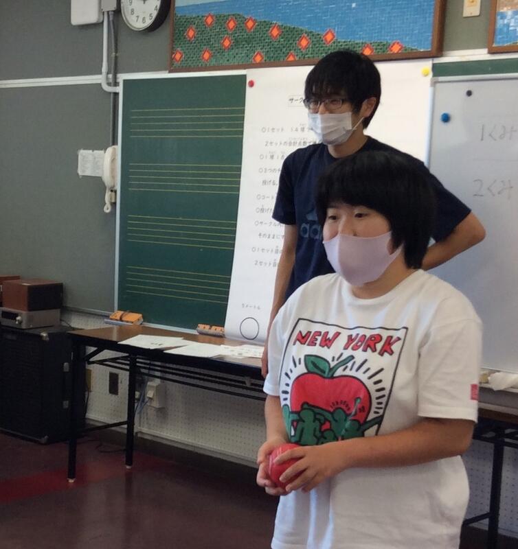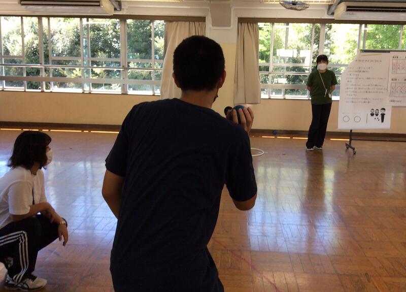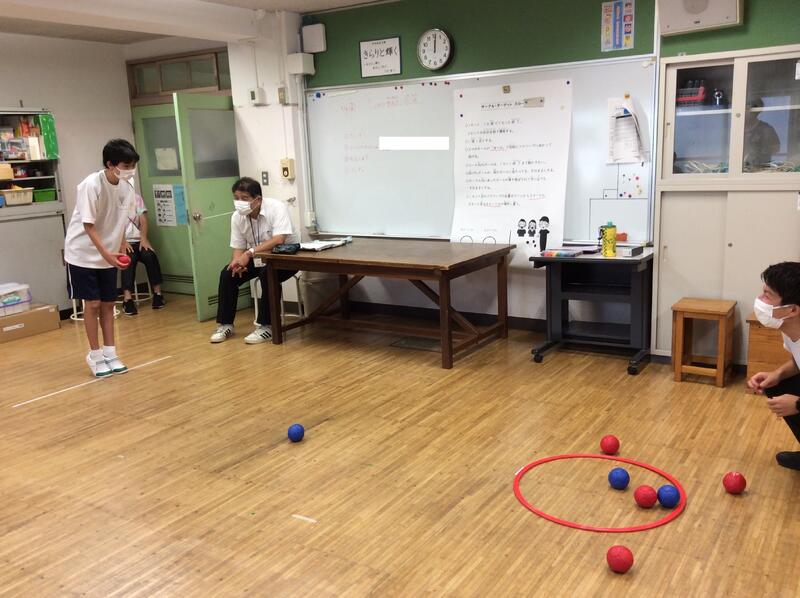 最初に猛獣狩りゲームをし、その後、サークル・ターゲット・スローの試合をやりました。須和田と二中混合チームを5チーム作って対戦。