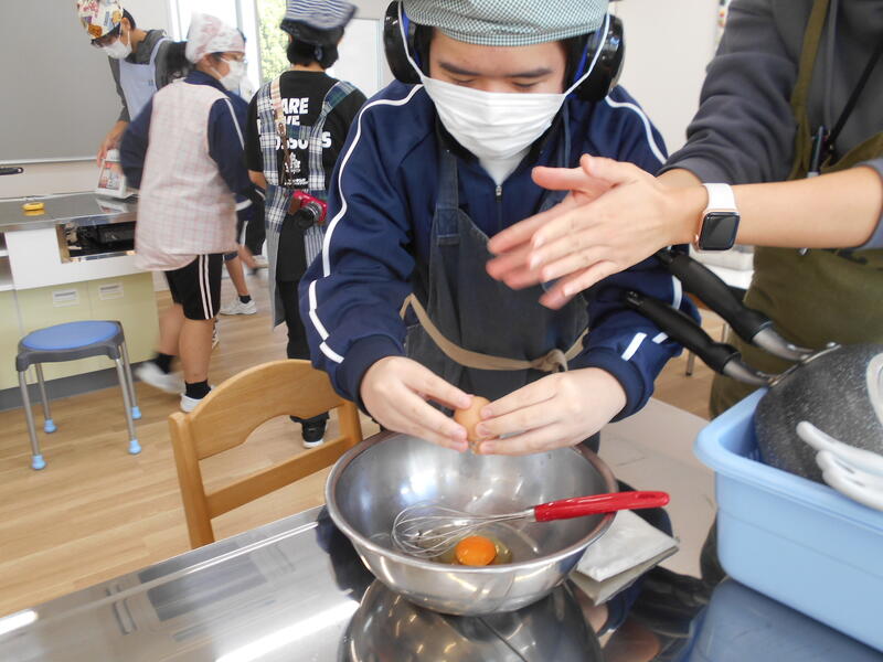 「お肉」さらに「しょうが焼き」と聞いて、生徒たちはやる気満々です。笑
