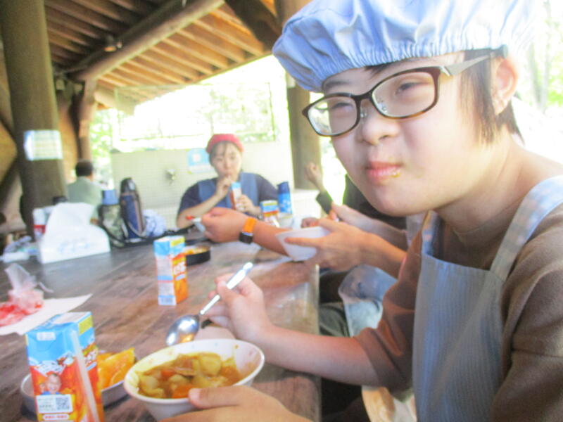 10月5~6日の中学部1・2年生は、電車やバスを乗り継ぎ、千葉市少年自然の家に行きました。現地では、ウォークラリーやレクリエーション、野外調理を行いました。野外調理で作ったカレーライスは、格別の味だったようです。