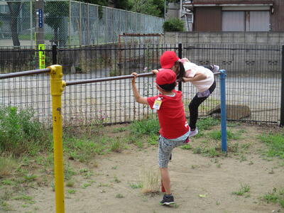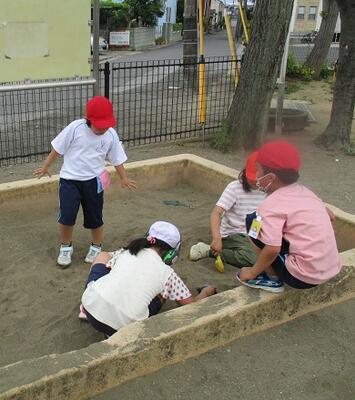 公園では砂場や遊具で友だちと楽しく交流しました。