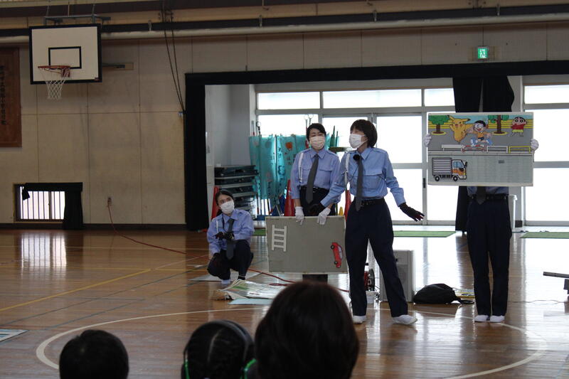 交通安全教室 投稿日時 : 2022/06/28 一般 6月17日(金)に交通安全教室を行いました。 警察の方は、お話が上手で、児童に合わせた内容を考えてくださったこともあり、 子どもたちは低、高学年ともに立派な態度でお話を聞くことができていました。 実際に、横断歩道を渡る練習を全員が行うなど、子どもたちにとってよい体験となりました。