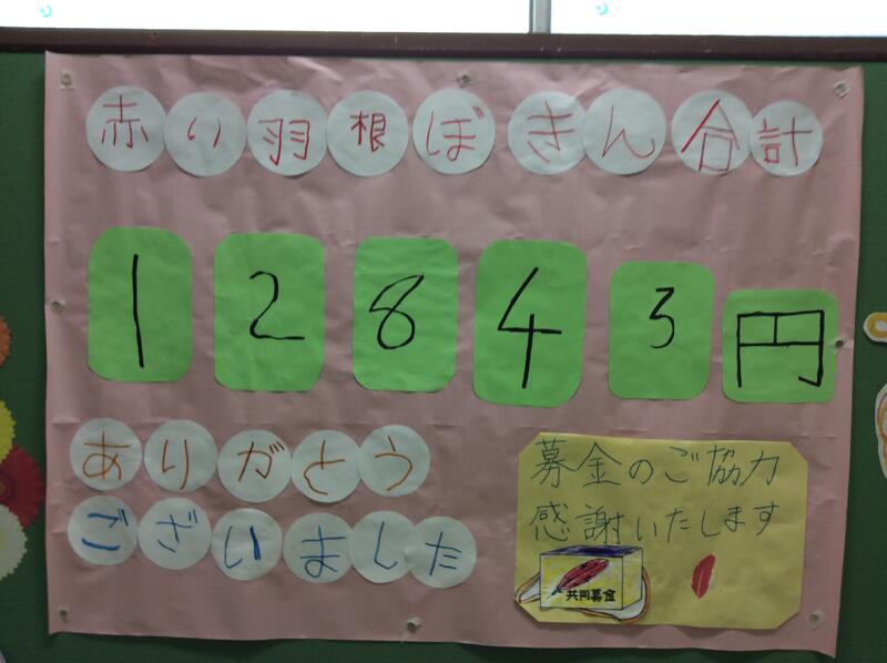 1月30日(月)~2月3日(金)に赤い羽根共同募金活動を全校で行いました。各学部のねらいは、次のように考えました。小学部は、ポスターを見て募金について知る。中学部は、募金活動について知り、保健委員会中心に募金活動の体験。高等部は、募金活動を知り、各委員会で協力して募金活動を行う、です。今年は全校で、12,843円集まりました。募金は、千葉県共同募金会市川市支会に入金しました。ご協力、ありがとうございました。