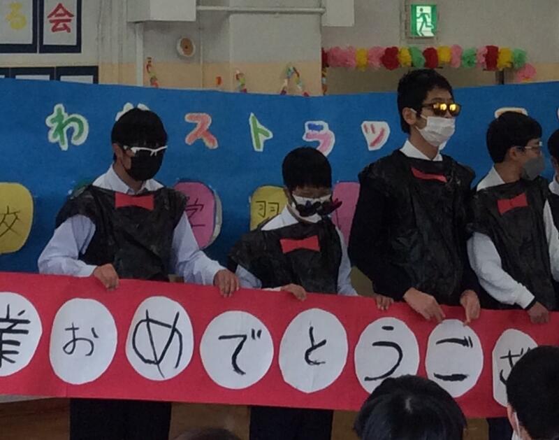 3月1日(水)に小学部、2日(木)に高等部、3日(金)中学部の卒業生を送る会が行われました。在校生と卒業生が、それぞれに趣向を凝らし、心温まる会となりました。会の終わり頃には、卒業生が、卒業記念品を在校生に渡し、在校生は、心を込めて作ったプレゼントを渡しました。互いに感謝の気持ちがあふれ、素晴らしい会となりました。小学部6年生、中学部3年生、高等部3年生にとっても、在校生にとっても心に残る会となったことだと思います。たくさんの感動をありがとうございました。