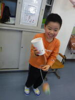 1年生は、生活科の時間に学年でお正月遊びをしました。けん玉は、紙コップを使って、自分たちで一生懸命に作りました。ひもの先についた玉を紙コップに入れるのは、大人でも案外難しいですが、上手に手を動かして「ポンッ」と入った瞬間、「ヤッター!」と歓声があがっていました。紙ずもうは、「トントン」と力加減を工夫しながら行っていました。身近な素材を使った遊びを通して、お正月の伝統的な遊びを体験できました。