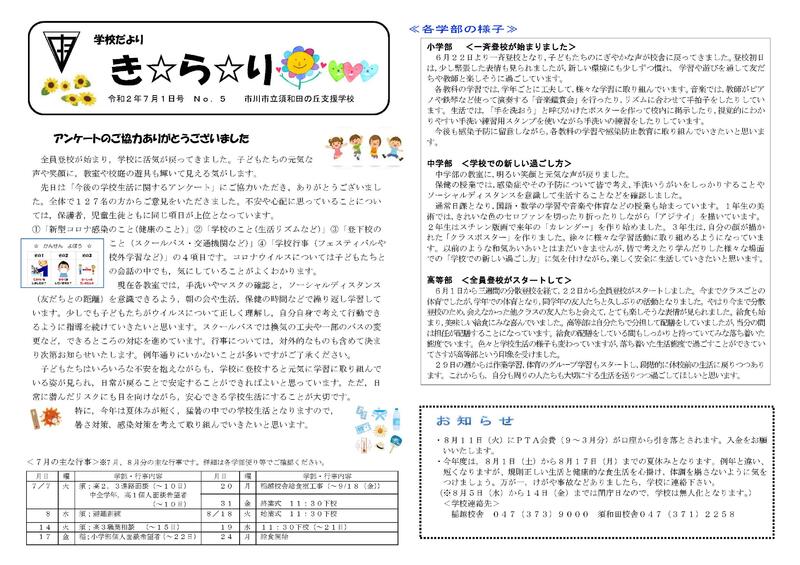 緊急事態宣言が解除され、やっと学校が再開です。遅れていた入学式もできました。久しぶりに子ども達の笑顔に会えて、本当にうれしく思います。した。6月号です。