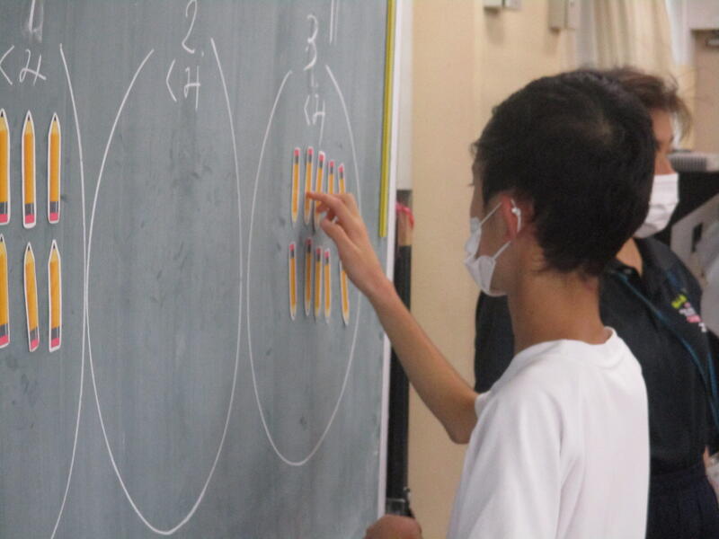 英語のゲーム。「Bring me ten bananas.」 と言われて見事正解!さすが3年生です。