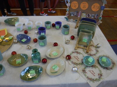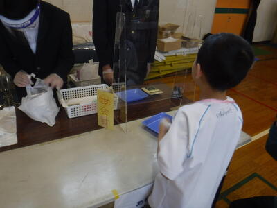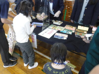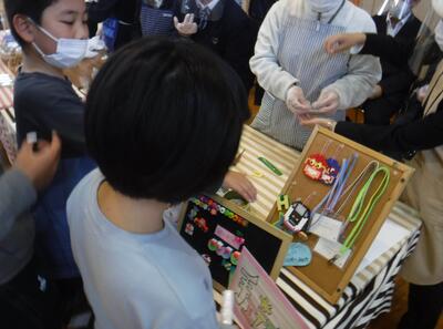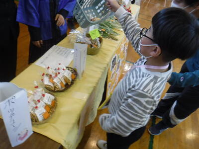11月10日(木)に稲越小学校の体育館で、高等部の生徒による製品の頒布が行われ、小学部児童が参加しました。たくさんの製品が並んでおり、子ども達も目を輝かせていました。稲越小学校の校長先生や教頭先生も来てくれました。高等部の生徒、小学部の児童、職員とみんなが笑顔になる素敵な時間となりました。