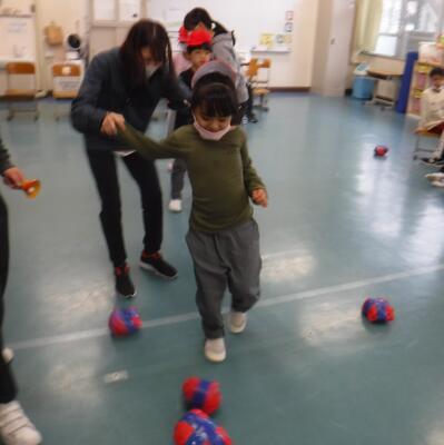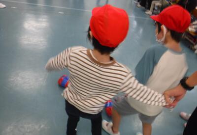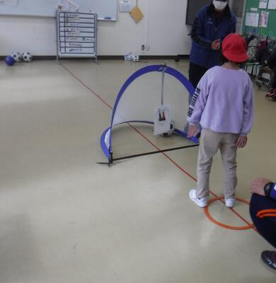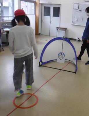 1年生は新聞紙ボールでサッカーをしました。