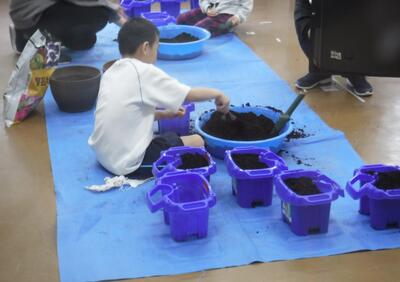 2年生はチューリップの球根を植えました。