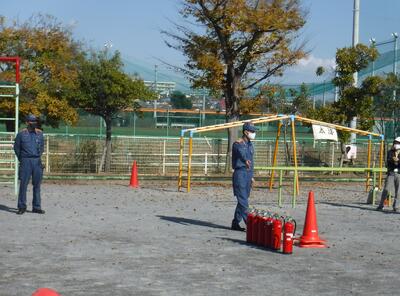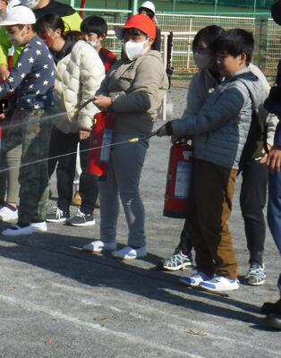 小学部の児童も参加し、教員と一緒に上手に消火器を扱うことができていました。
