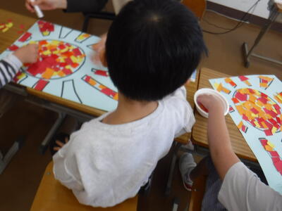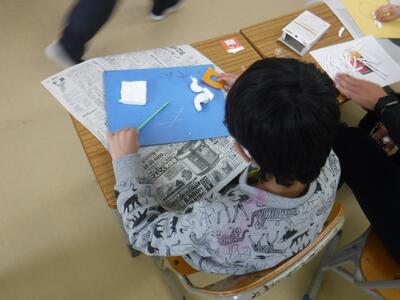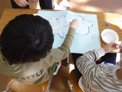 2年生はそれぞれが貼り絵を作成しました。