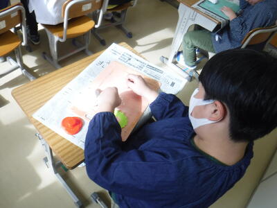 4年生は紙粘土でハンバーガーセットを作りました。