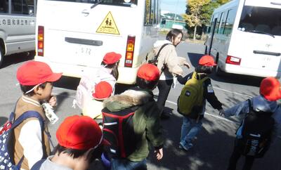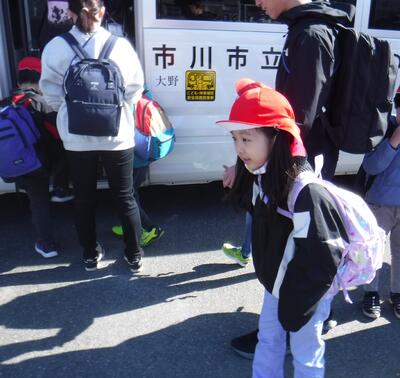 1.2.3年生がスクールバスで市川市動植物園に向かいました。
