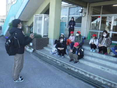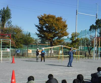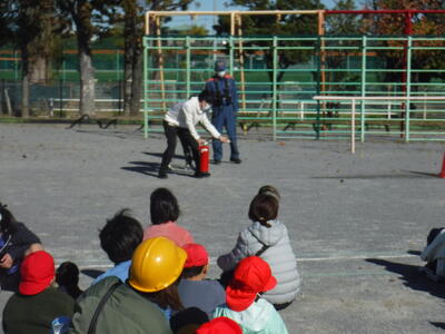 消防署の方を招き、地震発生→火災発生→校庭への避難を全体で行いました。
