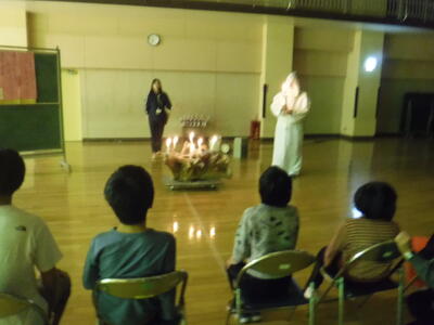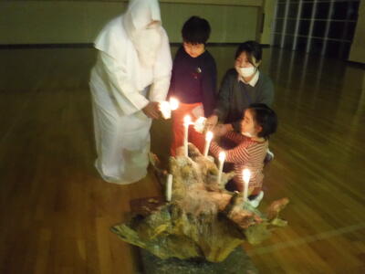 夕食後は体育室に移動しキャンドルファイヤーやフォークダンスを楽しみました。