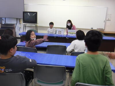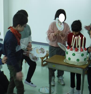 今回の司会進行は6年生。ケーキを用意したり、プレゼントをあげたりしました。