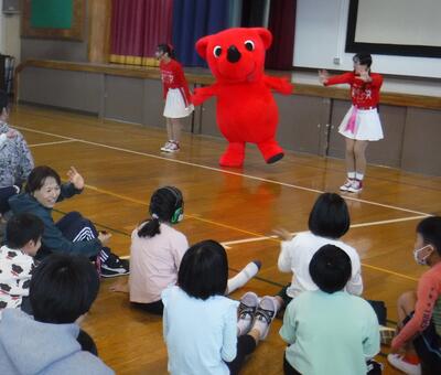 低学年、高学年に分かれてそれぞれ活動し、クイズやダンス、写真撮影、ハイタッチなどでチーバくんとの時間を楽しみました。