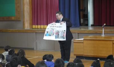 始業式は「希望の丘」斉唱→校長先生の話→川上先生の話(3学期の生活について)という内容でした。