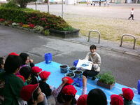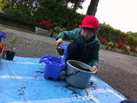 1年生はアサガオを育てます。今日はみんなで種を植えて水やりをしました!