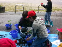 生活科の学習で、6年生が花の苗植えをしました。この苗は「市川市花と緑のまちづくり財団」からいただいたものです。